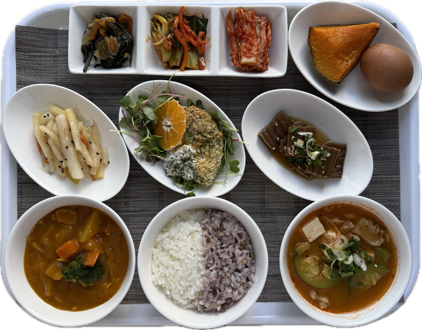 애호박찌개, 치킨카레, 간장깻잎지지짐, 청경채겉절이, 아보카도튀김, 도라지배유자무침 등