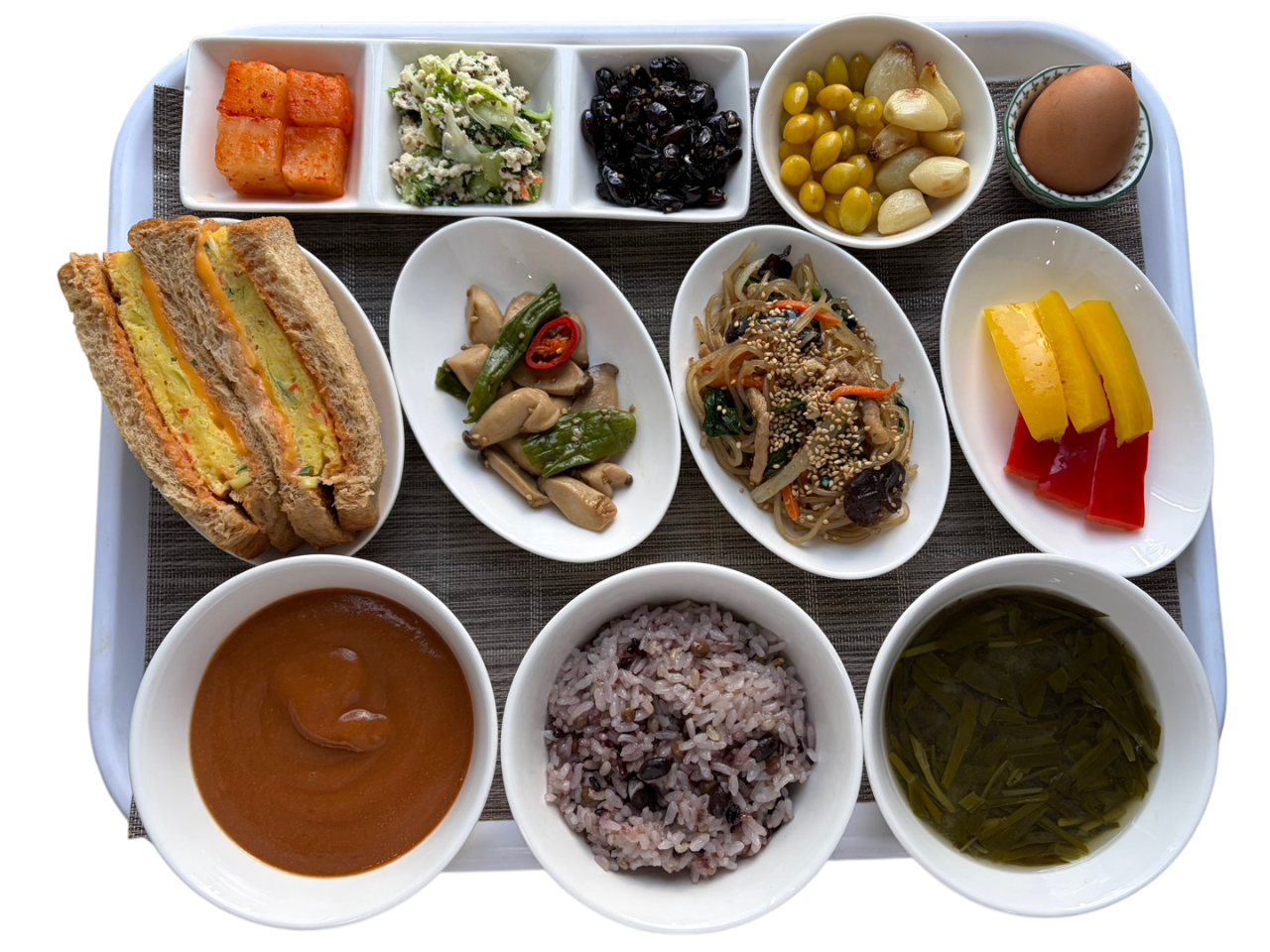쑥보릿국, 한식잡채, 서리태볶음, 얼갈이두부들깨무침, 길거리샌드위치, 새송이꽈리볶음, 마늘&은행구이 등